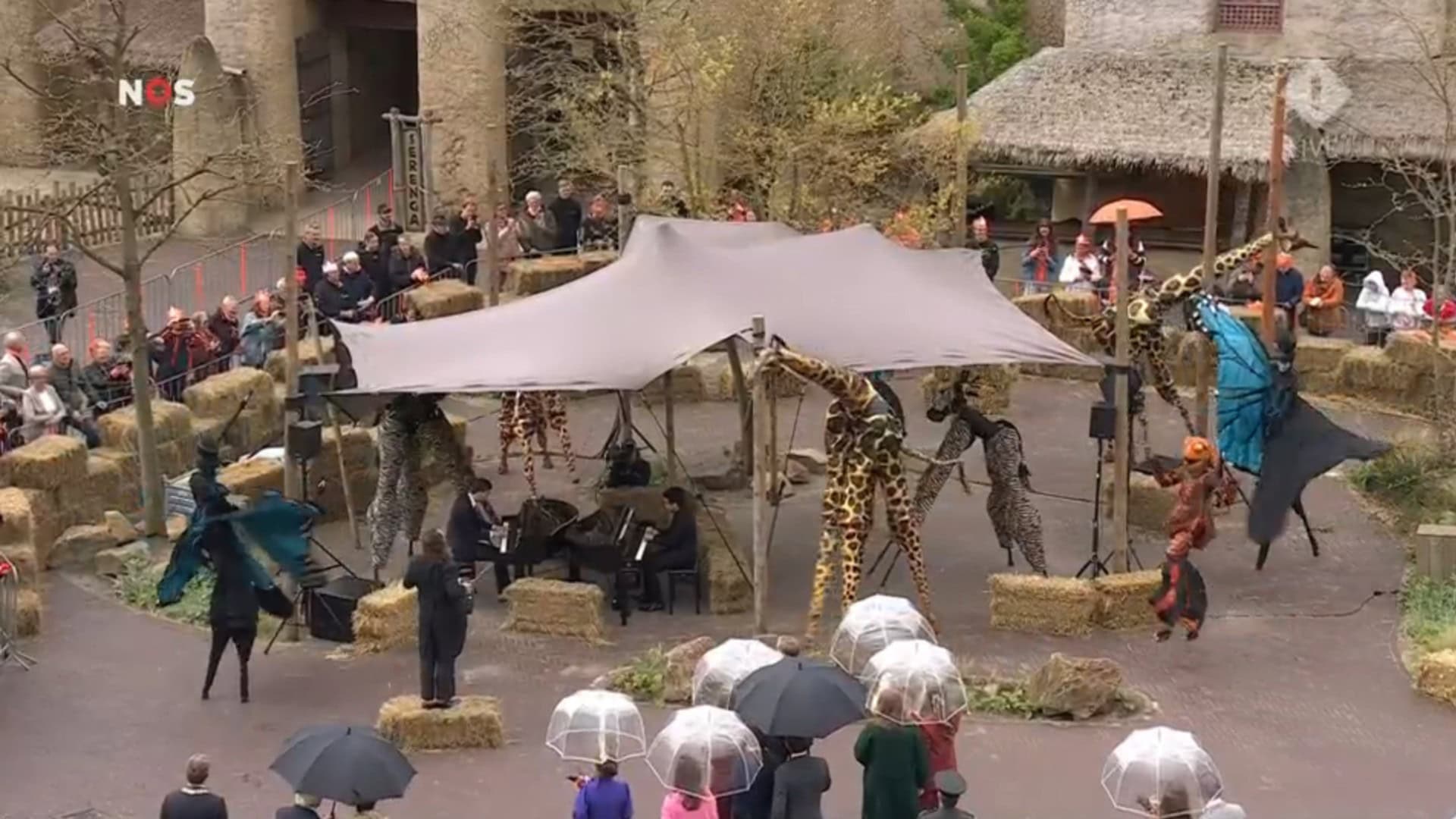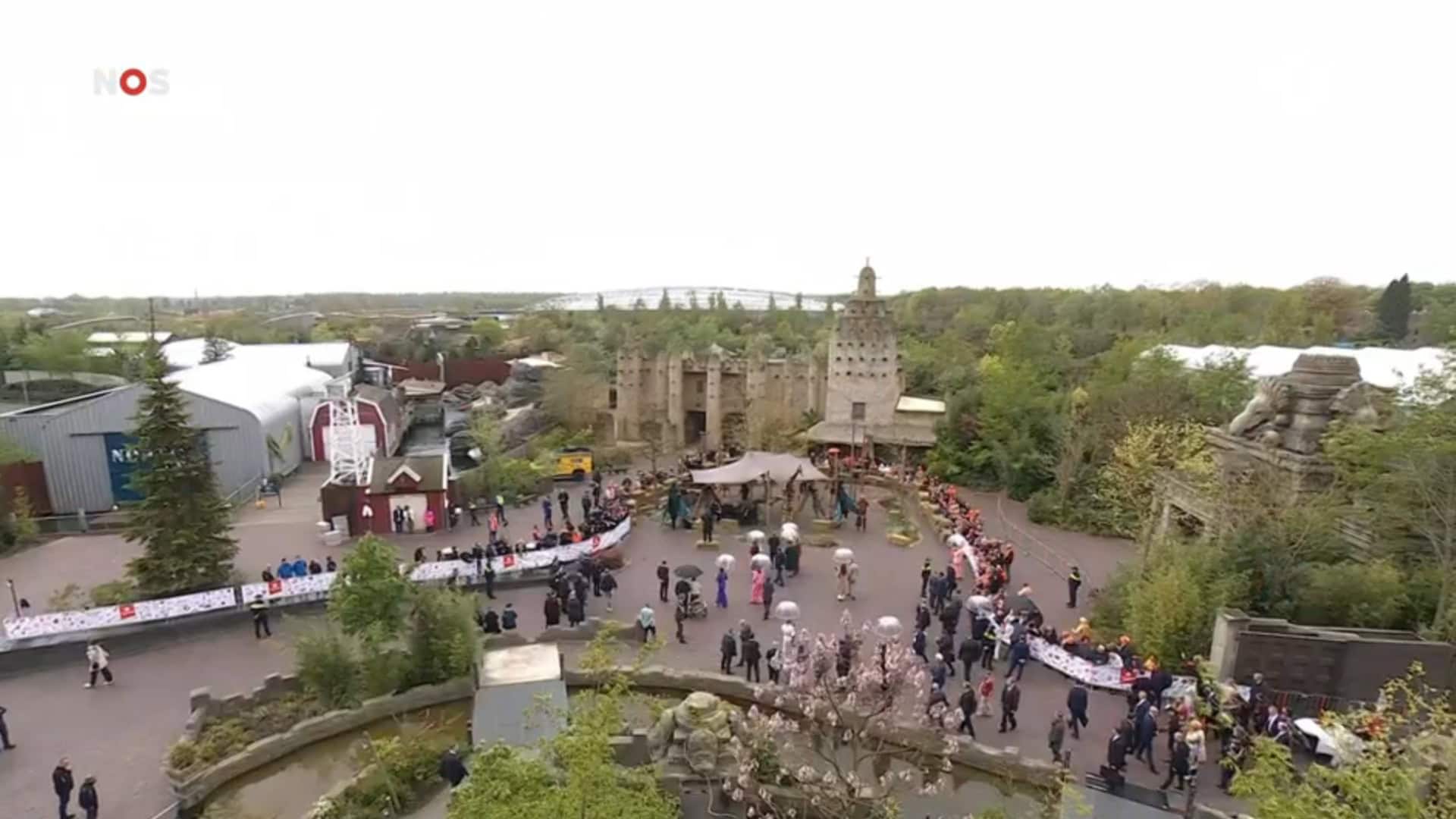 Tijdens het optreden dat door onder meer twee pianisten werd opgevoerd liepen er op het plein meerdere steltlopers verkleed als giraffen, zebra’s en vlinders over het plein. De gethematiseerde poorten van de drie themagebieden Nortica, Serenga en Jungola waren gedurende het bezoek prominent in beeld. Een beperkt aantal abonnementhouders mocht aanwezig zijn op het entreeplein.