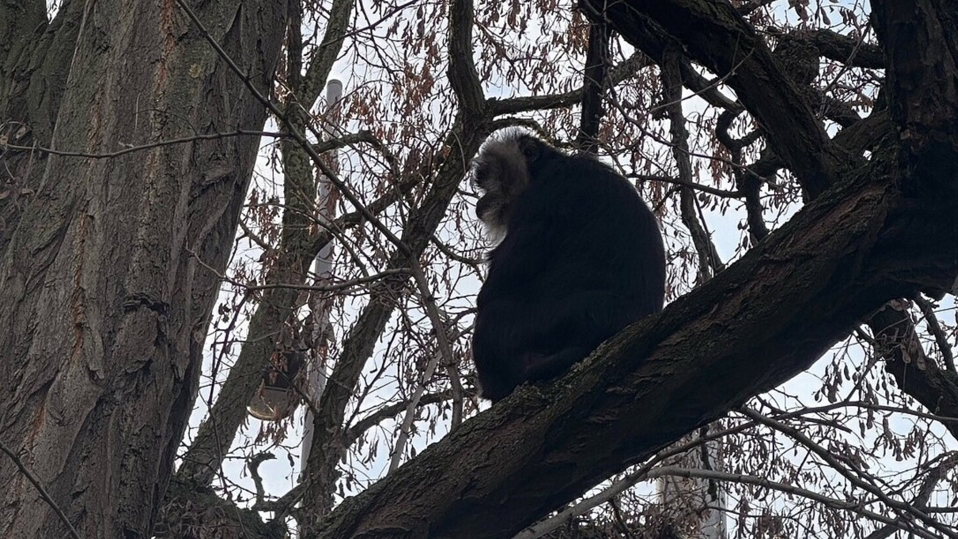 De vrouwelijke baardaap zat in een boom op slechts een paar kilometer afstand van de dierentuin. Een team van de dierentuin ving het dier niet veel later in een naastgelegen flatgebouw. Daar was de aap zelf naar binnen gegaan.
