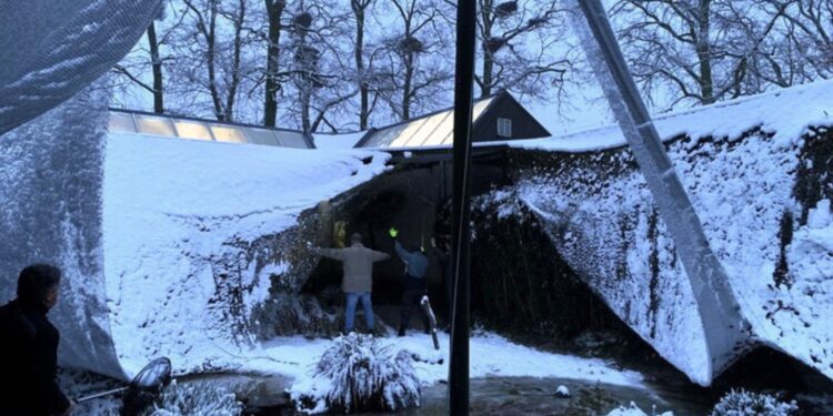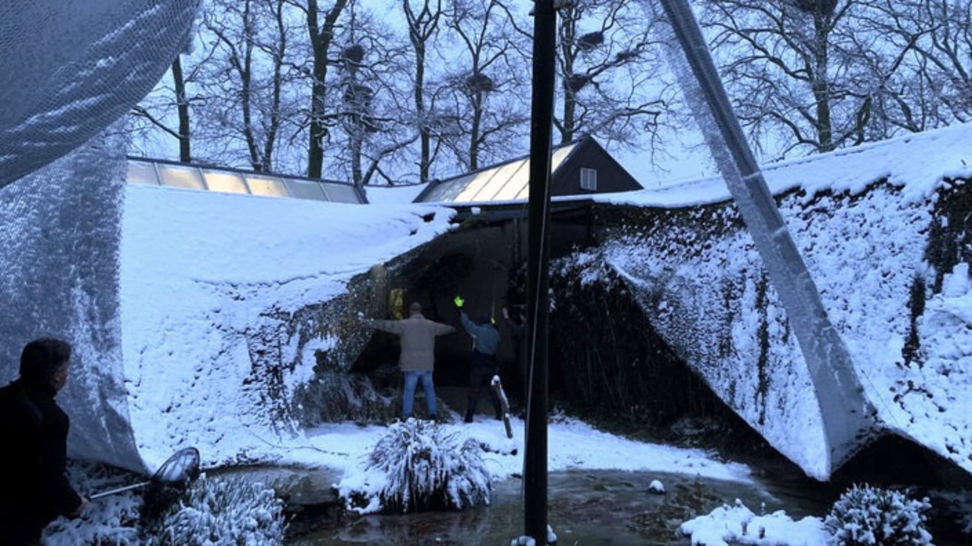 Volgens de dierentuin gaat het om een “materiaaldefect”. Het gewicht van de sneeuw liet het net barsten, ondanks dat de constructie jarenlang weer en wind had doorstaan. In eerste instantie raakte geen van de dieren gewond, maar sommige vogels vlogen wel uit het verblijf.