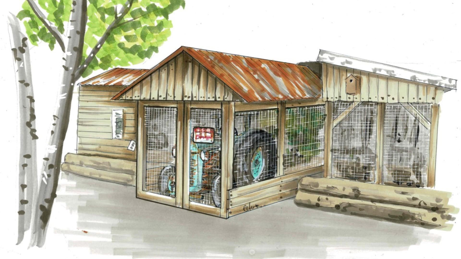 Op een impressie is te zien hoe het onderkomen van de knaagdieren verder gethematiseerd moet gaan worden. Zo is er een stalling te zien waar een tractor in staat. Of het er zo ook echt uit gaat zien is nog niet helemaal duidelijk. Het geeft wel de beoogde sfeer weer, benadrukt de woordvoerder.